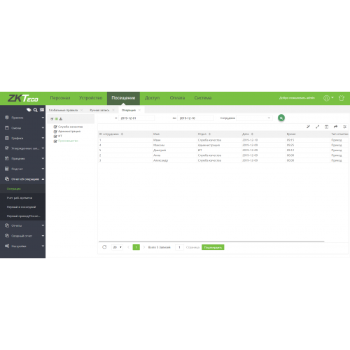 | Поддержка устройств | Устройства с PUSH: Green Label Series, A Series, B Series, FaceKiosk Series, iClock Series, IN Series, KF Series, MB Series, P Series, S Series, Silk Series, T Series, U Series, UA Series, uFace Series, VF Series, X Series, VisibleLight Series |