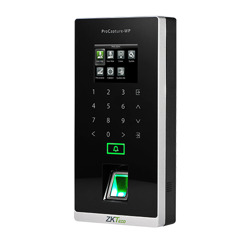 В терминале контроля доступа ProCapture-WP установлен самый современный сенсор отпечатков пальцев SilkID. Он обеспечивает высокую скорость идентификации даже сухих, влажных и грубых поверхностей пальцев. Сенсор способен отличить имитацию и реальный отпечаток пальца человека, что обеспечивает высокий уровень защищенности всей вашей системы безопасности. Скорость проверки значительно увеличена благодаря использованию новейшего алгоритма анализа и новой аппаратной платформе ZMM220, оснащенной процессором 1,2 ГГц. Сенсорная клавиатура делает легкой и понятной настройку терминала, регистрацию и удаление посетителей. Терминал имеет водонепроницаемый и пылезащищенный корпус, соответствующий классу защиты IP65, что позволяет устанавливать его снаружи здания. Терминал специально разработан для автономных приложений, таких как система безопасности офиса, склада, магазина, загородного дома, гаража и пр.